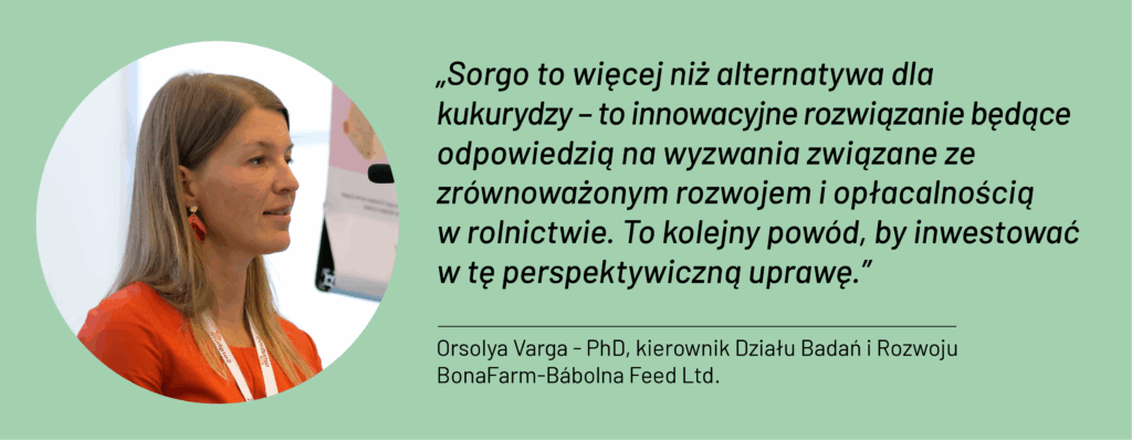 Na Węgrzech sorgo coraz częściej wykorzystywane jest jako nowy surowiec w żywieniu zwierząt monogastrycznych. Podczas swojej prezentacji Orsolya Varga, PhD i kierownik ds. badań i rozwoju w Bonafarm-Bábolna Feed Ltd., omówiła jego korzyści ekonomiczne oraz środowiskowe, a także przedstawiła wyniki badań dotyczących żywienia drobiu.