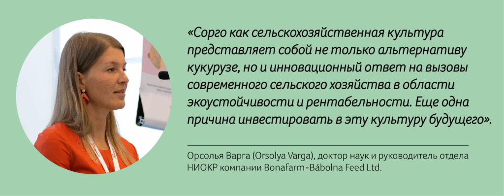 Сорго постепенно становится новым фуражным сырьем для кормления моногастричных животных в Венгрии. В ходе своего выступления, доктор наук и руководитель отдела НИОКР компании Bonafarm-Bábolna Feed Ltd. Орсолья Варга, рассказала об экономических и экологических преимуществах этой культуры и представила результаты испытаний в птицеводстве.